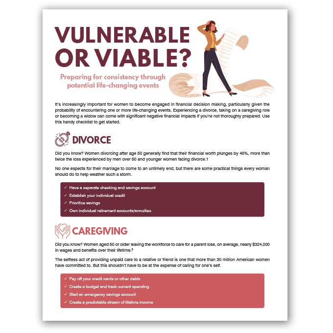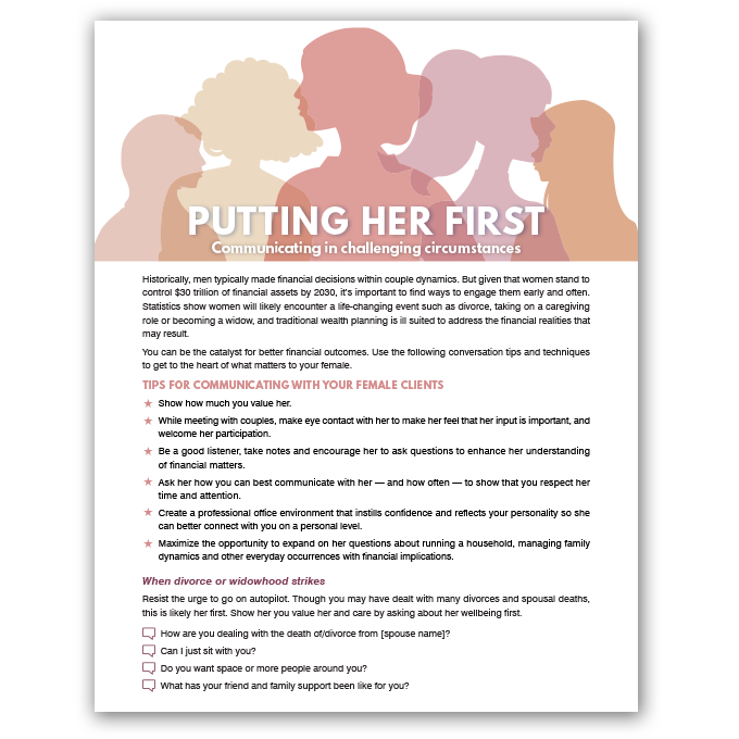 Thank you for accessing our comprehensive resource collection designed to empower female clients! Research shows that women respond to financial guidance through education, risk protection and strategic planning — and they highly value the trusted advisor who delivers it.